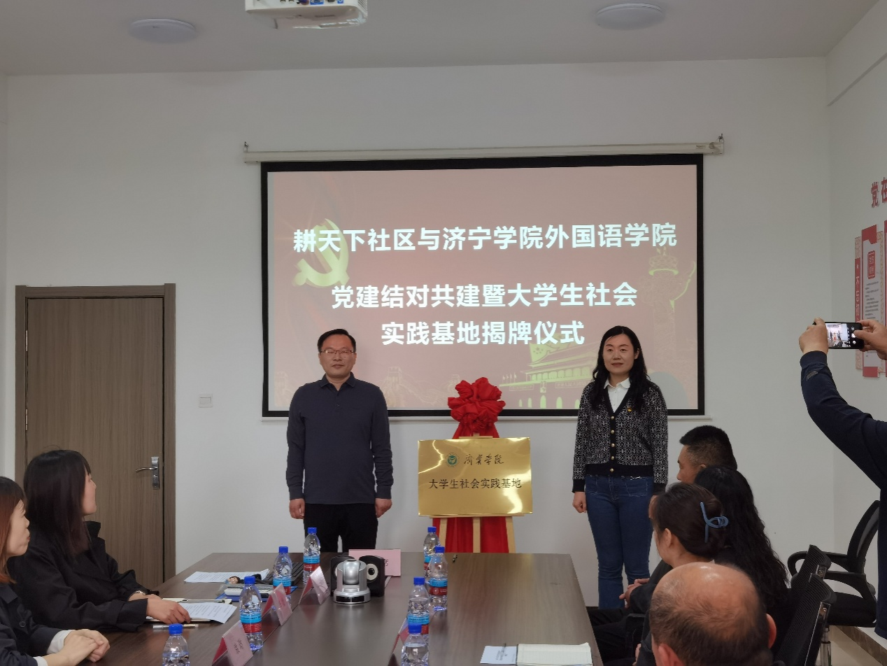 4月8日下午,赢博·体育,赢博(中国)党委与曲阜市时庄街道耕天下社区党委党建共建暨大学生社会实践基地揭牌仪式在耕天下社区党群服务中心举行。赢博·体育,赢博(中国)党委副书记文灿、团委副书记姜璨,曲阜市民政局党组成员、社会综合党委副书记邢洪彬,共青团曲阜市委副书记池雪,时庄街道党工委副书记孔令新,学院辅导员段明月、学生党员代表等参加此次活动。